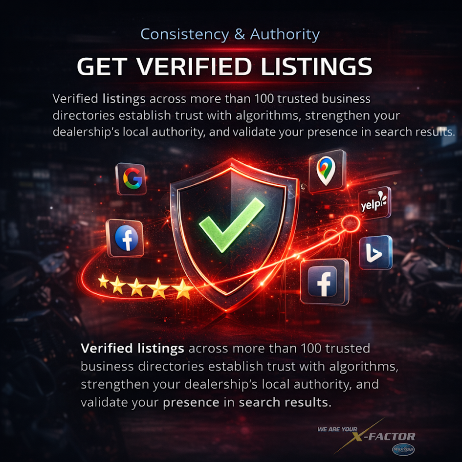 Verified listings across more than 100 trusted business directories establish trust with algorithms, strengthen your dealership’s local authority, and validate your presence in search results
