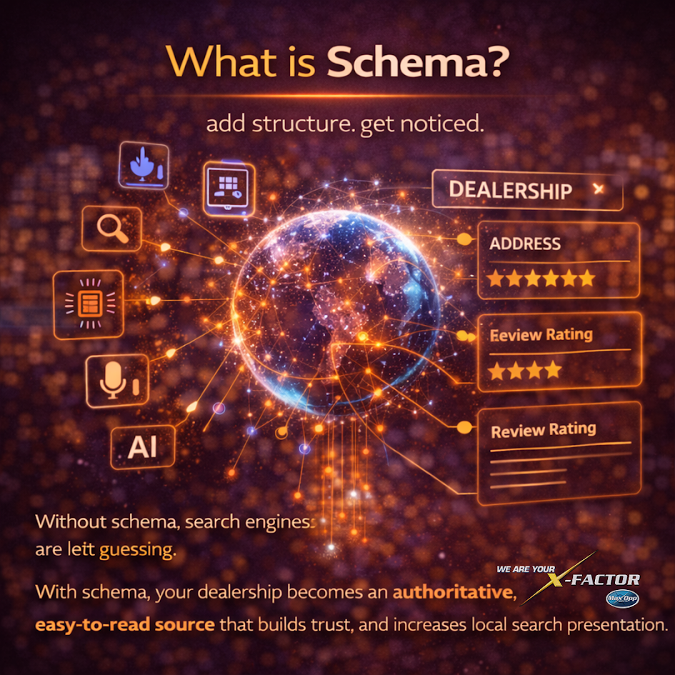 Schema is the hidden advantage that makes search algorithms prioritize your dealership — defining who you are, what you sell, and where you operate.